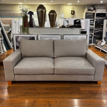 Cardiff 2,20mts patas maderas lustradas, cinchas elásticas, placa súper soft 28kg en asiento, vellón siliconado en almohadones de respaldo.
