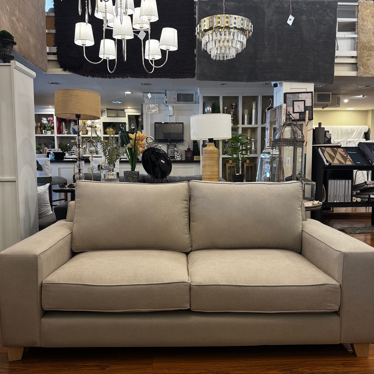Cardiff 2mts patas maderas lustradas, cinchas elásticas, placa súper soft 28kg en asiento, vellón siliconado en almohadones de respaldo.