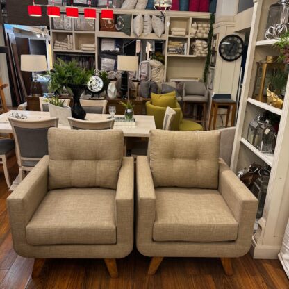 2 poltronas Castor, estructura madera multilaminada, patas madera lustrada, cinchas elásticas, placa súper soft en asiento y vellón siliconado en almohadones de respaldo.