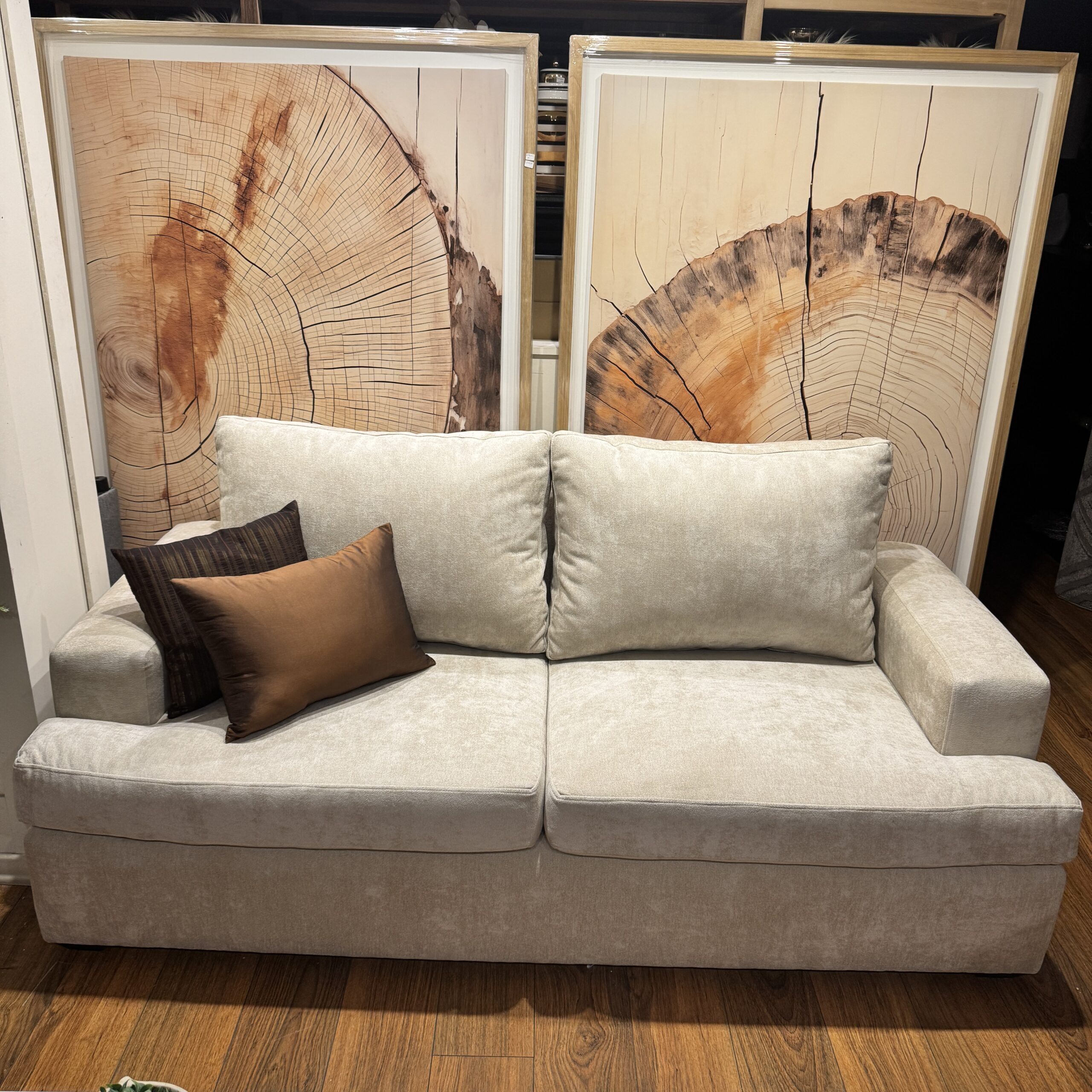Excelente calidad, al mejor precio del mercado. Estructura en madera saligna con cinchas elasticas y resortes , placa supersoft 27kg en asiento marca Piero y vellon siliconado en almohadones de respaldo, se puede hacer a medida. Medida del exhibido 2,00×0,95mts. Tapizado en tela boucle idem foto.