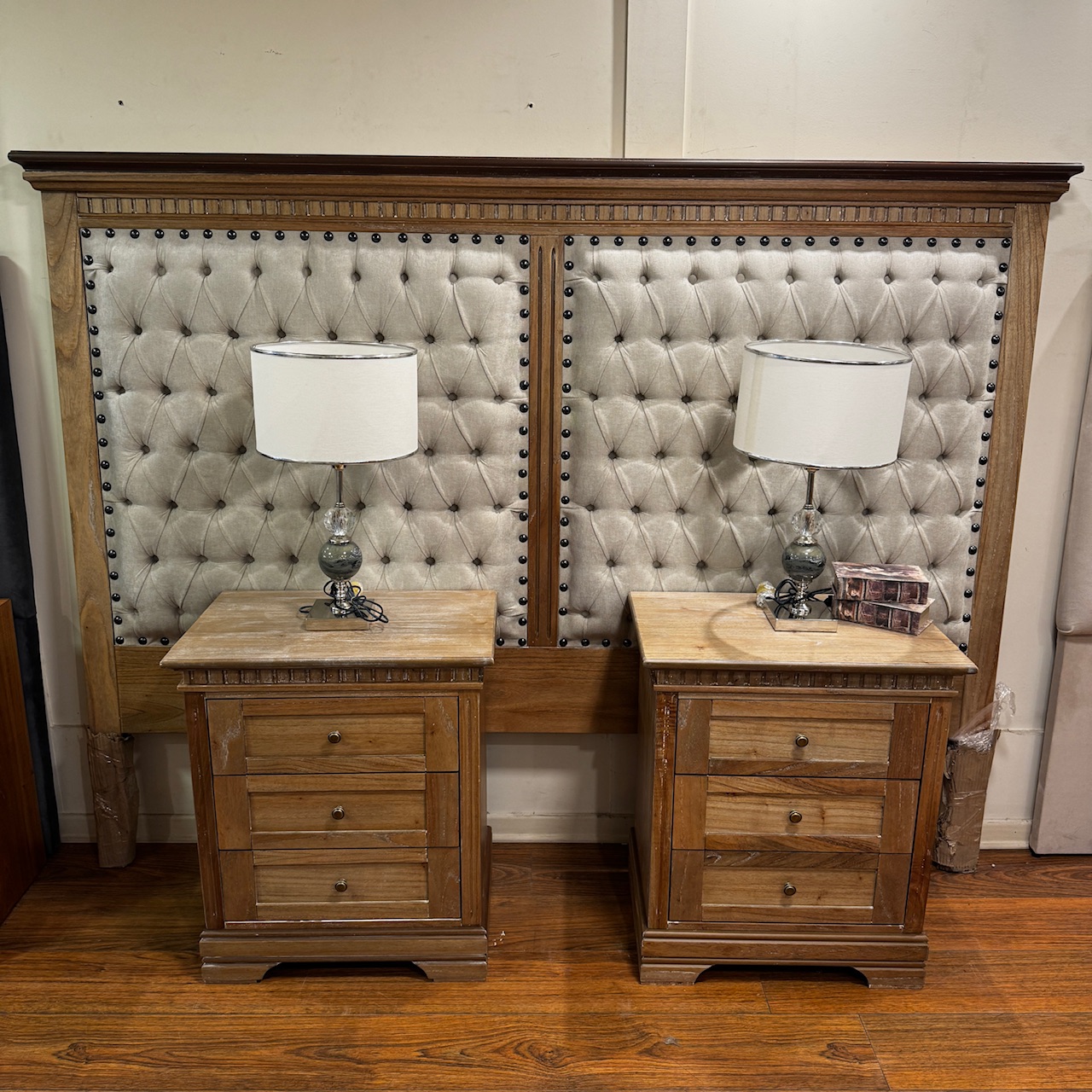 *respaldo para colchón King, madera y tapizado con capitonee en pana con tachas. Medidas 2,16×1,60h