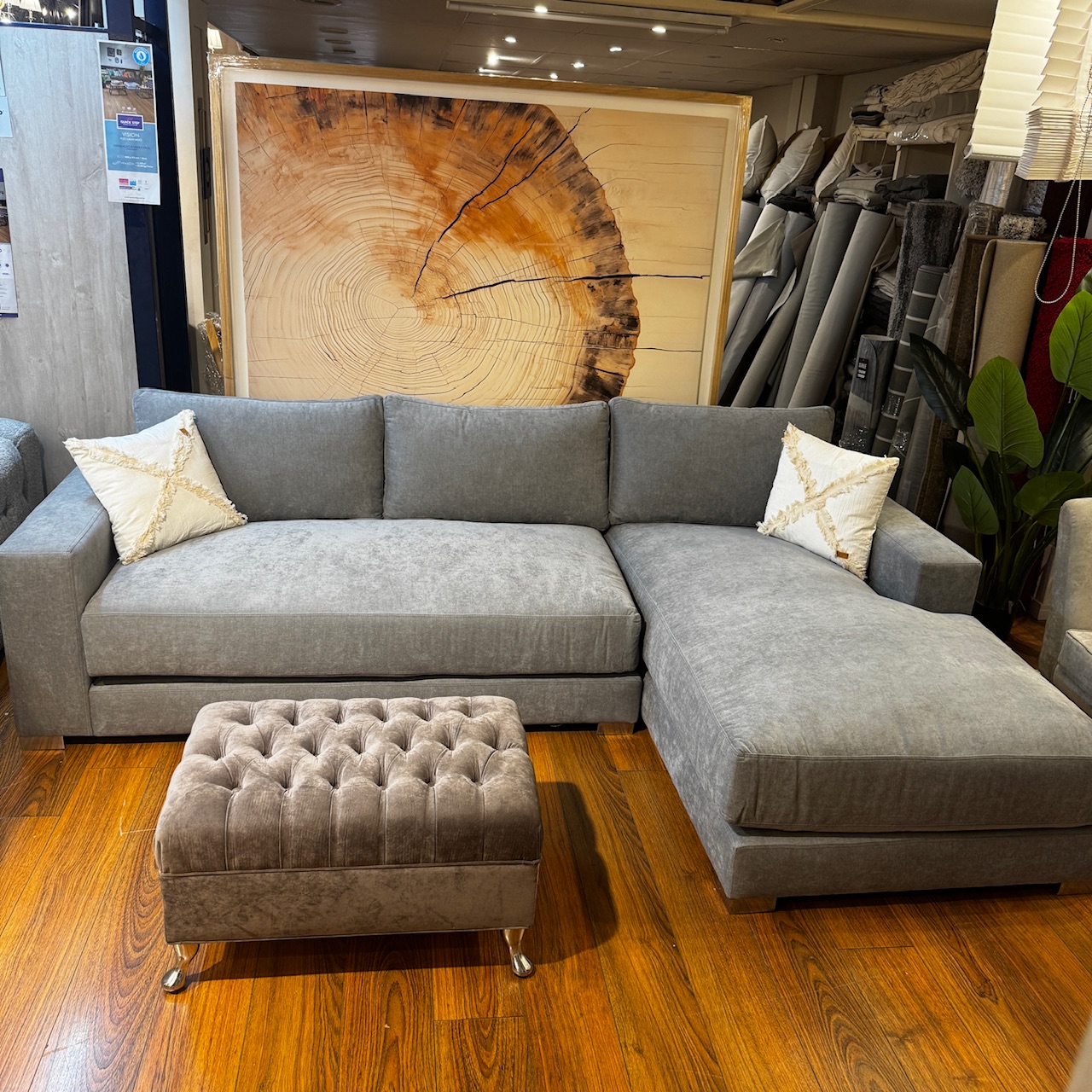 Esquinero Nube, medida 2,80×1,60mts placa hiper soft en asiento, cincha elástica en estructura y vellón siliconado en almohadones de respaldo.