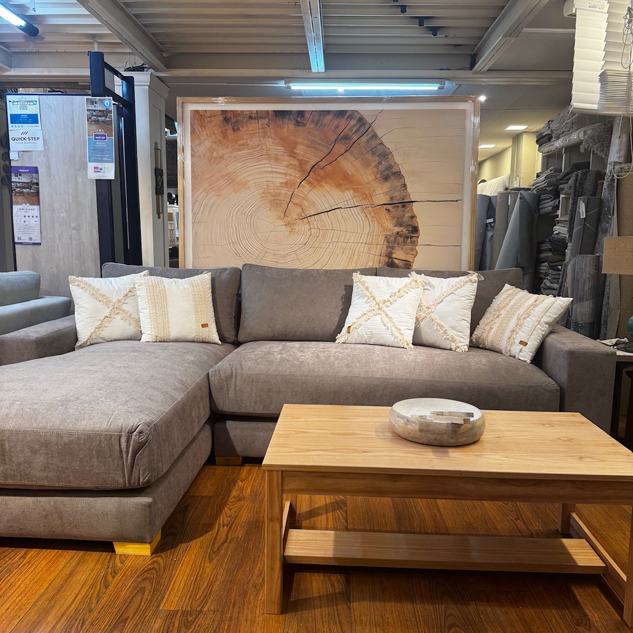 Esquinero Nube, medida 2,80×1,80mts placa hiper soft en asiento, cincha elástica en estructura y vellón siliconado en almohadones de respaldo.