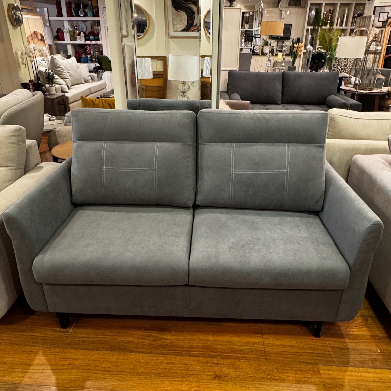 Sofá Gianna 1,60×0,90mts estructura madera , cinchas elásticas, placa super soft y vellón siliconado en almohadones de respaldo.