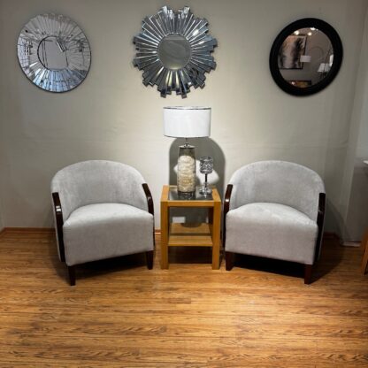 1 Poltrona Hill medida 0,70×0,70×0,80h .Estructura madera estacionada, deralle de madera lustrada a la vista en apoyabrazos, cinchas elásticas y placas de asiento origen Italia.
