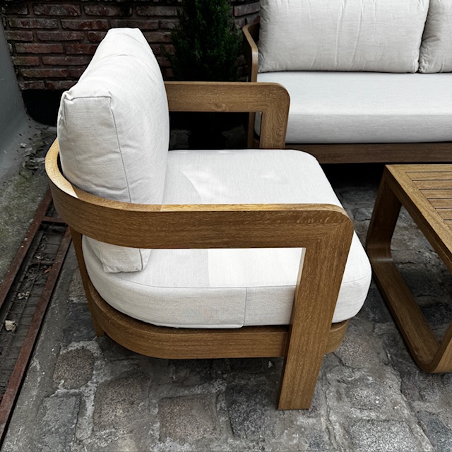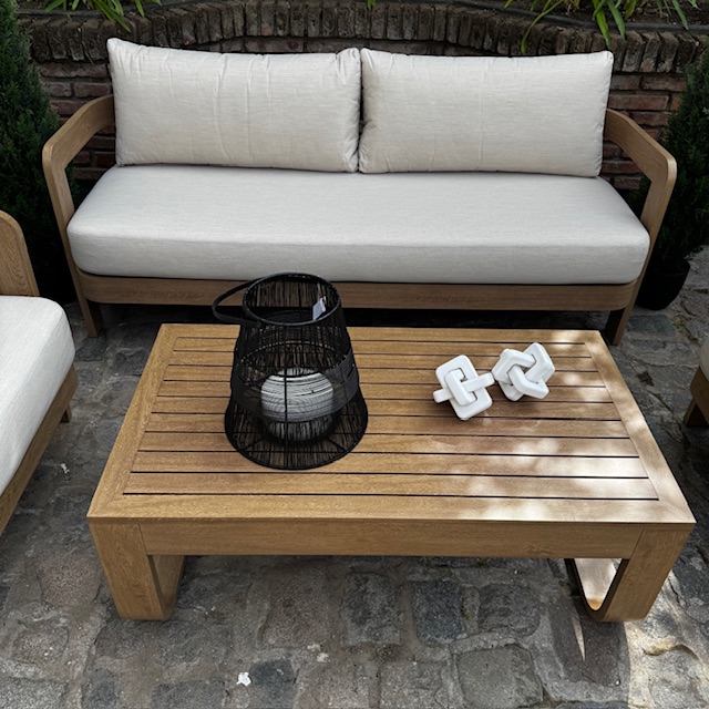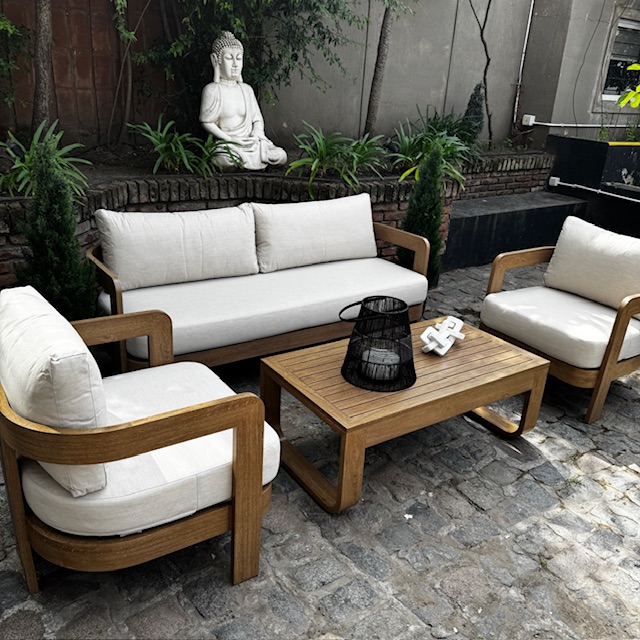 Juego exterior aluminio símil madera set 4 piezas en stock