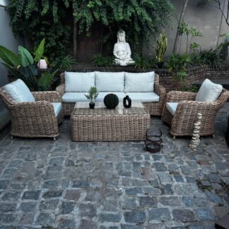 Promo 1 mesa baja Rattan sintético medida 1,20×0,70mts con vidrio templado.
